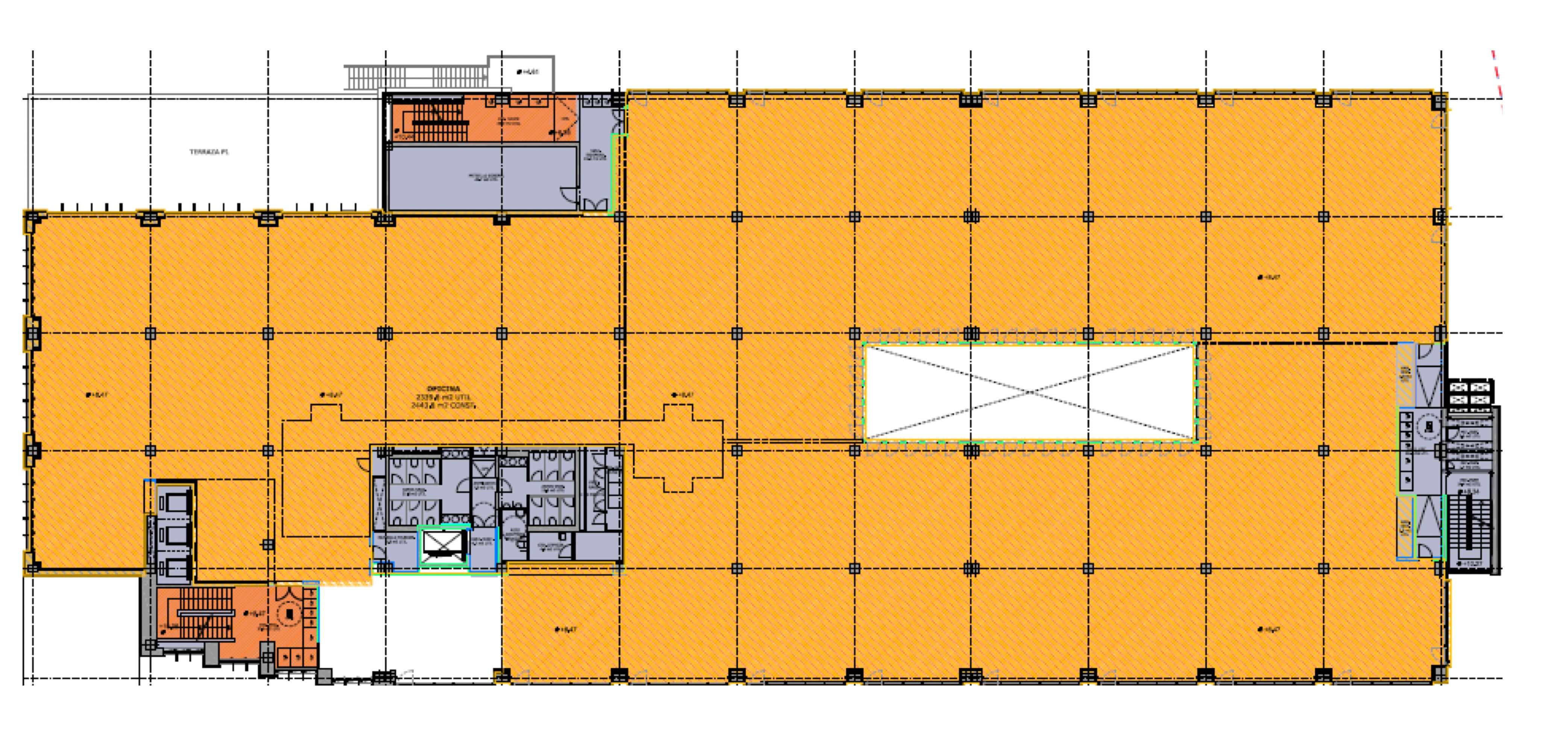 Actualmente, cuenta con plantas rectangulares de aproximadamente 2.800m² destinadas a oficinas.